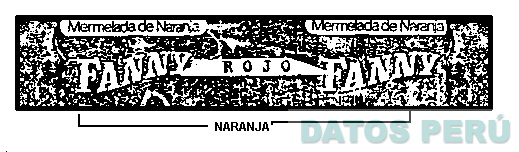 La etiqueta rectangular de colores, rojo, naranja y la denominación FANNY, conforme al facsímil adjunto