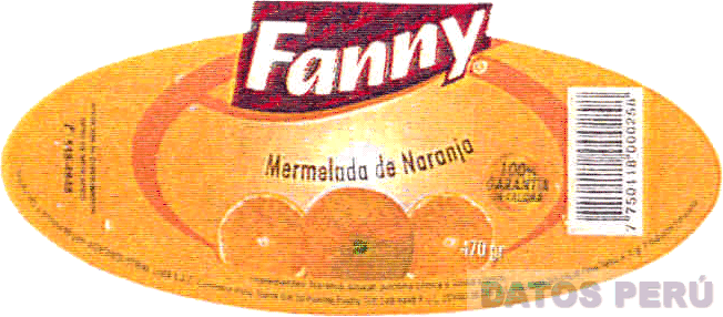El logotipo conformado por la denominación FANNY escrita en letras estilizadas dentro de una figura irregular, ubicada sobre una figura oval que contiene la representación estilizada de naranjas, en la combinación de colores rojo berbellón, blanco, anaranjado, negro y verde; conforme al modelo adjunto