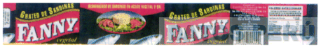 LA ETIQUETA RECTANGULAR Y DENOMINACION "FANNY" CON UN PLATO Y TORTA DE PESCADO Y LEGUMBRES, DESPLAZAMIENTO DE CUATRO PECES AL NORTE EN FONDO AZUL OSCURO Y COMBINACION COLORES, NEGRO, AMARILLO, ROJO, AZUL MARINO, SEGUN MODELO ADJUNTO,