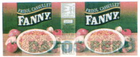 LA ETIQUETA RECTANGULAR CONTENIENDO LA DENOMINACION FANNY Y LA FIGURA DE DOS PLATOS ALUSIVOS AL PRODUCTO, DECORADO CON COMPLEMENTOS DE COCINA, EN LOS COLORES VERDE EN DEGRADE, BLANCO, DORADO, NEGRO, ROJO Y BEIGE, CONFORME AL MODELO ADJUNTO,