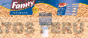 La etiqueta rectangular en cuyo lado izquierdo se aprecia la denominación FANNY escrita en letras características y al lado derecho la equivalencia nutricional, el fondo está conformado por la representación estilizada de trozos de pescado y tomate, todo en los colores rojo berbellón, rojo, blanco, beige, azul, azul claro, verde y amarillo; conforme al modelo adjunto