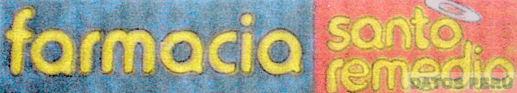 El logotipo conformado por la denominación FARMACIA SANTO REMEDIO escrita en letras características, en la parte derecha se aprecia la figura de una aureola; todo en los colores blanco, azul, amarillo y rojo; conforme al modelo adjunto