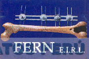 El diseño de un fijador externo aplicado a un hueso y la denominación FERN E.I.R.L. escrita en letras características, todo en la combinación de colores azul, plomo, beige y blanco; conforme al modelo adjunto