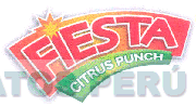 El logotipo conformado por la denominación FIESTA escrita en letras características donde el punto de la letra I es una estrella, dentro de una figura rectangular curveada, debajo se aprecia la frase CITRUS PUNCH escrita en letras características, dentro de una figura rectangular curveada más pequeña, todo en los colores blanco, rojo, anaranjado, verde y amarillo; conforme al modelo adjunto