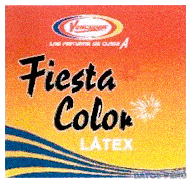 La denominación FIESTA COLOR LATEX VENCEDOR y logotipo (se reivindica colores), conforme al modelo