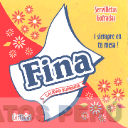 El logotipo conformado por una figura cuadrangular dividida en dos por una línea oblicua irregular, en la parte central se aprecia la figura estilizada de una servilleta sobre la cual se aprecia la denominación FINA escrita en letras características y la frase CALIDAD SUPERIOR escrita en letras características dentro de una cinta, en la parte superior e inferior se aprecian dieciocho figuras de flores y cuatro hojas, asimismo, se aprecia la frase SERVILLETAS GOFRADAS ¡SIEMPRE EN TU MESA! escrita en letras características y la palabra CORTADAS escrita en letras características todo en los colores amarillo, rojo, blanco y azul; conforme al modelo adjunto