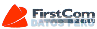 LA DENOMINACION FIRSTCOM PERU ESCRITA EN LETRAS CARACTERISTICAS COLOR AZUL A LA DERECHA DE UNA PIRAMIDE ATRAVESADA POR UNA FRANJA DESCENDENTE DE IZQUIERDA A DERECHA EN COLOR ROJO, CONFORME AL MODELO ADJUNTO,