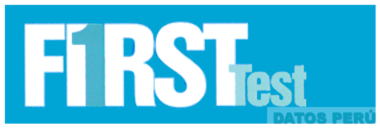 El logotipo conformado por la denominación FIRSTTEST (sin reivindicar) escrita en letras características y la representación estilizada del número uno entre las letras I y R, todo dentro de una figura rectangular y en los colores celeste en diversas tonalidades y blanco, conforme al modelo adjunto