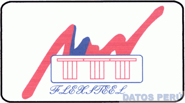 El logotipo conformado por la denominación FLEXSTEEL escrita en letras características en cuya parte superior se aprecia la figura de un rectángulo con tres pilares en su interior y la figura irregular de un trazo como fondo, todo en los colores azul, rojo y blanco; conforme al modelo adjunto
