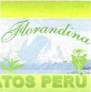 El logotipo conformado por la denominación FLORANDINA escrita en letras características, de fondo se aprecia la representación estilizada del paisaje del Huascarán y dos flores, en la parte superior e inferior se aprecian dos franjas rectas, todo en la combinación de colores verde en diversas tonalidades, blanco, celeste en diversas tonalidades y azul en diversas tonalidades; conforme al modelo adjunto