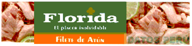 LA ETIQUETA CONTENIENDO LA DENOMINACION FLORIDA EN CUYA LETRA"I" SE APRECIA LA FIGURA DE UN TREBOL EN COLOR DORADO, EL PLACER INOLVIDABLE FILETE DE ATUN EN LETRAS CARACTERISTICAS DE COLOR BLANCO DENTRO DE UN RECTANGULO DE COLOR VERDE OSCURO EN LA PARTE SUPERIOR Y ANARANJADO EN LA PARTE INFERIOR, DIVIDIDO POR UNA LINEA DORADA; A LOS LADOS LA FIGURA DE LOS FILETES DE ATUN ADORNADO CON RODAJES DE LIMON, CONFORME AL MODELO ADJUNTO,