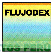El logotipo conformado por la denominación FLUJODEX escrita en letras características; en la parte inferior y superior se aprecian dos figuras, todo dentro de una figura cuadrangular con fondo irregular, y en la combinación de colores anaranjado, amarillo en diversas tonalidades, verde en diversas tonalidades, celeste en diversas tonalidades y negro; conforme al modelo adjunto