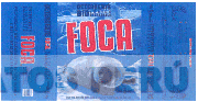 El logotipo conformado por la denominación FOCA escrita en letras características, en la parte central el diseño de una foca sobre una superficie que se asemeja a hielo, todo dentro de una etiqueta de forma rectangular y demás leyendas alusivas al producto, todo en colores rojo, azul, celeste y blanco; conforme al modelo adjunto
