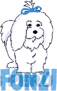 El logotipo conformado por la denominación FONZI escrita en letras características, en la parte superior se aprecia la figura de un perro con un lazo, todo en los colores blanco, negro y azul; conforme al modelo adjunto