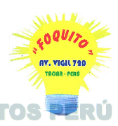 El logotipo conformado por la denominación "FOQUITO" escrita en letras características, debajo de la cual se aprecia la denominación AV. VIGIL 720 TACNA - PERÚ (sin reivindicar) escrita en letras características, todo dentro de la figura estilizada de un foco resplandeciente, en la combinación de colores rojo, amarillo, verde, azul, blanco, celeste; conforme al modelo adjunto