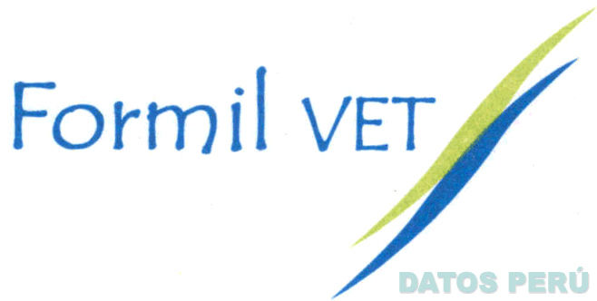 El logotipo conformado por la denominación FORMIL VET escrita en letras características de color azul, con dos franjas ondeadas de color verde y azul; conforme al modelo adjunto