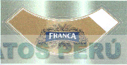 La etiqueta conformada por un ribete azul, con dos bordes superiores e inferiores de color dorado, uno más grueso que el otro y separados entre si por una línea fina de color azul, en el centro se aprecia la denominación FRANCA escrita en letras características de color blanco y bordes dorados dándole un efecto de luz, debajo la denominación ESPECIAL escrita en letras características, el ribete se encuentra ornado por seis ramas de espigas de cebada que salen por arriba y por debajo del ribete, a los costados presenta hojas de lúpulo y ornamento; conforme al modelo adjunto