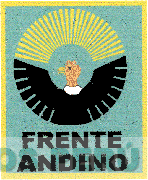 La denominación FRENTE ANDINO escrita en letras características y en la parte superior la representación estilizada de un cóndor, rodeado por líneas perpendiculares que forman un círculo, todo en los colores negro, verde, amarillo y anaranjado; conforme al modelo adjunto.