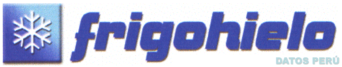 LA DENOMINACION FRIGOHIELO ESCRITA EN LETRAS CARACTERISTICAS PRECEDIDA POR LA FIGURA DE UN CRISTAL DE NIEVE AL INTERIOR DE UN CUADRADO, TODO EN LOS COLORES AZUL Y BLANCO, CONFORME AL MODELO