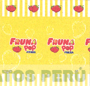 El logotipo conformado por la denominacion FRUNA POP escrita en letras caracteristicas, sobre las letras R, A y O se aprecian una naranja, una pera y una fresa, respectivamente; debajo se aprecian dos fresas y la palabra FRESA escrita en letras caracteristicas; en la parte superior se aprecin la representacion de fresas y en el fondo se aprecian rectangulos y las figuras estilizadas de fresas todo en los colores amarillo, blanco, rojo, verde, anaranjado, azul; conforme al modelo adjunto