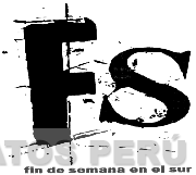 La denominación FS FIN DE SEMANA EN EL SUR escrita en letras características; todo sobre un fondo con figuras irregulares; conforme al modelo adjunto