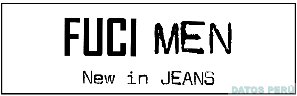 La denominación FUCI MEN NEW IN JEANS y logotipo, conforme al modelo