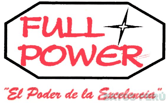 El logotipo conformado por la denominación FULL POWER escrita en letras características, encerrado en una figura de tipo octogonal inclinada dentro una estrella, debajo la frase EL PODER DE LA EXCELENCIA, todo en color rojo y negro; conforme al modelo adjunto