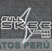 El logotipo conformado por la denominación FULL SKEE escrita en letras características, debajo se aprecia la denominación LOUNGE BAR escrita en letras características (sin reivindicar) y en el fondo se observan dos figuras geométricas irregulares, todo en los colores blanco y negro; conforme al modelo adjunto