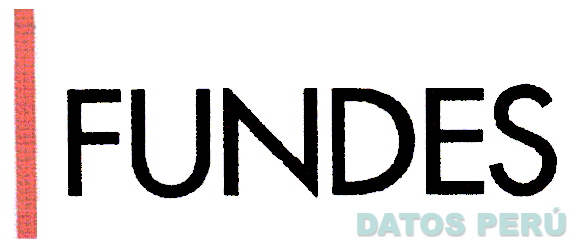 El logotipo conformado por la denominación FUNDES escrita en letras características de color negro, antecedida por una franja vertical de color anaranjado; conforme al modelo adjunto