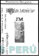 La etiqueta conformada en la parte superior por la denominación FUNDO SAN ANTONIO SUR escrita en letras características superpuesto a la figura de una hoja; en medio la denominación JM escrita en letras características y debajo se aprecia una figura rectangular en cuyo interior se aprecia un racimo de uvas; conforme al modelo adjunto