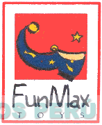 El logotipo conformado por la denominación FUNMAX TOYS escrita en letras características que presenta en la parte superior la representación de un zapato con una bola en la punta y unas figuras que asemejan la forma de las estrellas, todo contenido en un cuadrado, en la combinación de colores rojo, azul, amarillo, blanco y negro; conforme al modelo adjunto