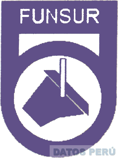 La denominación FUNSUR escrita en letras características, en un diseño irregular conteniendo figuras características, en los colores azul y blanco; conforme al modelo adjunto