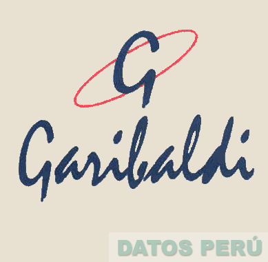 La denominación GARIBALDI escrita en letras características y la letra G estilizada sobre una figura ovalada; todo en los colores rojo, azul y beige; conforme al modelo adjunto