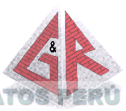 El logotipo conformado por una figura en forma de pirámide en color plomo, en tercera dimensión con sombra, conteniendo las letras G & R con fondo de ladrillos en color rojo; conforme al modelo adjunto