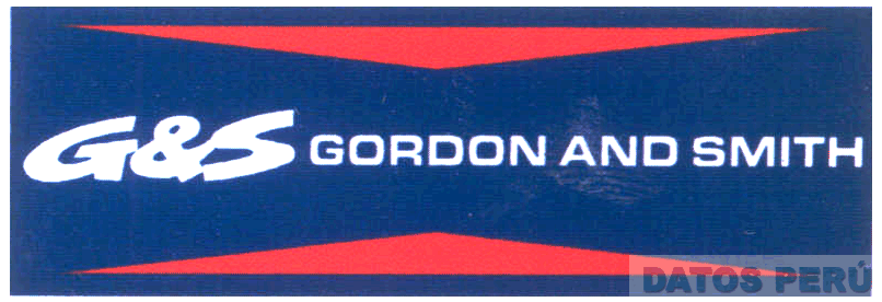 EL LOGOTIPO CONSTITUIDO POR UNA FIGURA RECTANGULAR DE FONDO COLOR AZUL QUE PRESENTA EN LAS PARTES LATERALES SUPERIOR E INFERIOR UNA FIGURA GEOMETRICA TRIANGULAR DE COLOR ROJO, EN EL MEDIO DEL LOGOTIPO SE ENCUENTRA ESCRITA LA DENOMINACION G&S GORDON AND SMITH ESCRITA EN LETRAS CARACTERISTICAS EN COLOR BLANCO; CONFORME AL MODELO ADJUNTO