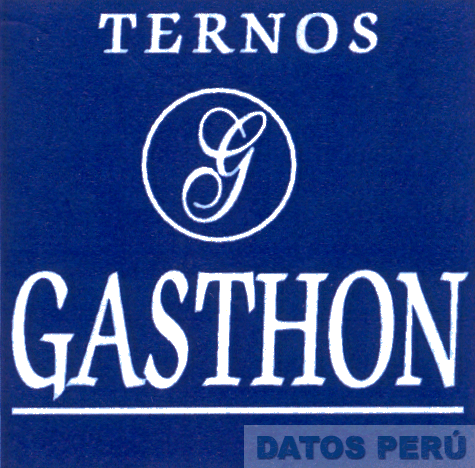 EL LOGOTIPO CONSTITUIDO POR LA DENOMINACION TERNOS EN LA PARTE SUPERIOR Y GASTHON EN LA PARTE INFERIOR ESCRITA EN LETRAS CARACTERISTICAS, EN MEDIO LA LETRA G DENTRO DE UN CIRCULO, TODO EN COLOR BLANCO CON FONDO AZUL, CONFORME AL MODELO ADJUNTO