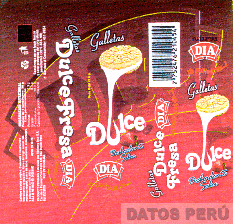 LA ETIQUETA RECTANGULAR CON LAS DENOMINACIONES GALLETAS DULCE FRESA DIA Y FIGURAS DE GALLETAS Y TENIENDO FIGURAS LINEALES Y GEOMETRICAS IRREGULARES REIVINDICANDO LOS COLORES