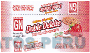 La denominación GALLETAS SÁNDWICH DOBLE DELEÍTE VAINILLA MERMELADA GALLETAS GN y logotipo (se reivindica colores), conforme al modelo