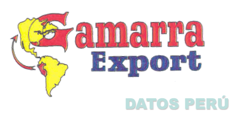 La denominación GAMARRA EXPORT escrita en letras características en los colores azul y rojo y la figura del continente americano en color amarillo, donde se aprecia el mapa del Perú en color rojo y una flecha hacia arriba; conforme al modelo adjunto (sin reivindicar el término GAMARRA)