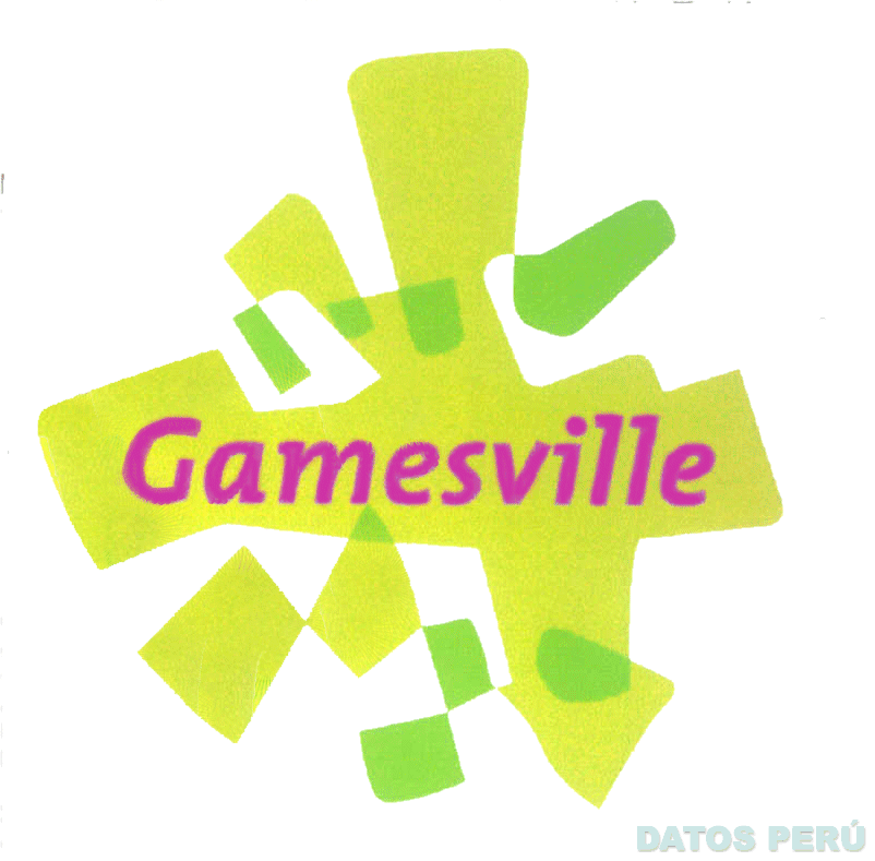 LA DENOMINACION GAMESVILLE CON ESCRITURA CARACTERISTICA EN COLOR LILA SOBRE UNA FIGURA DE FORMAS GEOMETRICAS EN COLORES VERDE CLARO Y VERDE OSCURO; CONFORME AL MODELO ADJUNTO