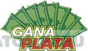 La denominación GANA PLATA (sin reivindicar) escrita en letras características sobre la representación estilizada de billetes; todo en los colores verde claro, verde oscuro, rojo y blanco; conforme al modelo adjunto