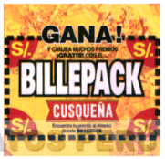 EL LOGOTIPO RECTANGULAR EN FORMA DE BILLETE DELIMITADO CON LINEAS PUNTEADAS DE COLOR NEGRO Y FONDO DE COLOR AMARILLO, EN LAS CUATRO ESQUINAS DE ESTE RECTANGULO EL SIGNO DE SOLES (S/.) DE COLOR AMARILLO CON FONDO ROJO EN UN ANGULO DE NOVENTA GRADOS DETRAS DE CADA SIGNO DE SOLES (S/.); EN LA PARTE SUPERIOR Y CORTANDO LAS LINEAS PUNTEADAS LA PALABRA "¡GANA!" DE COLOR NEGRO CON BORDES BLANCOS, MAS ABAJO Y EN COLOR NEGRO LA FRASE "Y CANJEA MUCHOS PREMIOS ¡GRATIS CON EL..." RESALTANDO LA PALABRA ¡GRATIS! CON LETRAS NEGRITA, AL CENTRO DEL LOGOTIPO LA PALABRA BILLEPACK ESCRITA EN LETRAS BLANCAS CON BORDES NEGROS; EN LA PARTE INFERIOR EL LOGOTIPO DE LA DENOMINACION CUSQUEÑA Y FINALMENTE LA FRASE ENCUENTRA TU PREMIO AL REVERSO DE ESTE BILLEPACK, EN LETRAS NEGRAS PEQUEÑAS; CONFORME AL MODELO ADJUNTO,