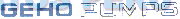 El logotipo conformado por la denominación GEHO PUMPS escrita en letras características, en los colores azul y blanco; conforme al modelo adjunto