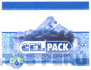 La etiqueta conformada por la denominación GEL PACK escrita en letras características dentro de una figura oval, y debajo la denominación TIPPIC escrita en letras características, en la parte superior la representación estilizada de una montaña de hielo, en la parte inferior izquierda la figura de dos flechas que contienen las denominaciones REHUSABLE Y AHORRE AGUA (sin reivindicar), que forman una figura circular y en el centro una gota, todo ello dentro de una franja que presenta como fondo diversas figuras irregulares, en los colores azul, celeste, blanco y verde; conforme al modelo adjunto