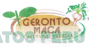 La denominación GERONTO MACA CAYETANO HEREDIA escrita en letras características dentro de una figura ovalada rodeada de líneas curvas y la figura estilizada de una maca y de un tallo con hojas, todo en los colores marrón, amarillo, verde claro y verde oscuro; conforme al modelo adjunto