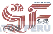 La denominación GF LUTHIER TALLER LABORATORIO y logotipo (se reivindica colores), conforme al modelo