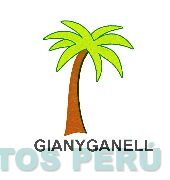 El logotipo conformado por la denominación GIANYGANELL escrita en letras características, sobre la cual se aprecia la representación estilizada de una palmera; todo en la combinación de colores marrón, negro y verde en distintas tonalidades; conforme al modelo adjunto