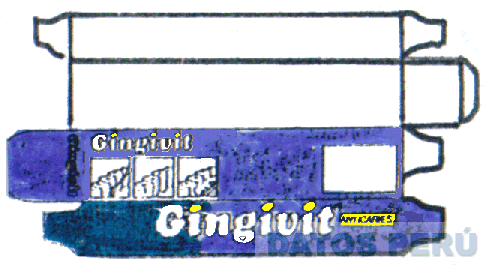 EL EMPAQUE CONTENIENDO LA DENOMINACION GINGIVIT ESCRITA EN FORMA ESTILIZADA EN LOS COLORES BLANCO Y AMARILLO; SOBRE FONDO AZUL Y CELESTE; SEGUN FACSIMIL ADJUNTO,