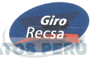 El logotipo conformado por la denominación GIRO RECSA escrita en letras características en la parte inferior una línea oblicua que empieza en su extremo izquierdo más angosto y termina en el extremo derecho más ancho, en el fondo se aprecia la figura estilizada de un triángulo al revés, todo esto dentro de una figura ovalada en los colores azul, rojo, azul marino y blanco; conforme al modelo adjunto