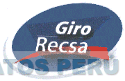 El logotipo conformado por la denominación GIRO RECSA escrita en letras características en la parte inferior una línea oblicua que empieza en su extremo izquierdo más angosto y termina en el extremo derecho más ancho, en el fondo se aprecia la figura estilizada de un triángulo al revés, todo esto dentro de una figura ovalada en los colores azul, azul marino, rojo y blanco; conforme al modelo adjunto